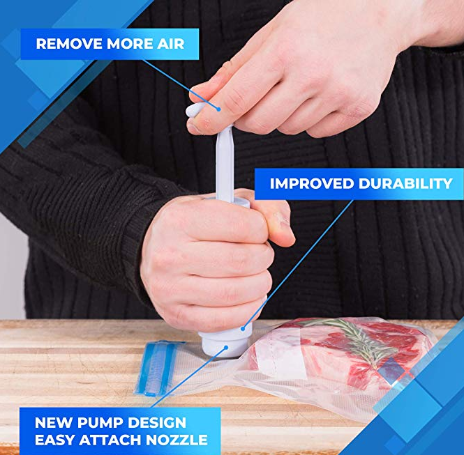 - Best hand vacuum sealer pump on the market which ensures air tight bags for food